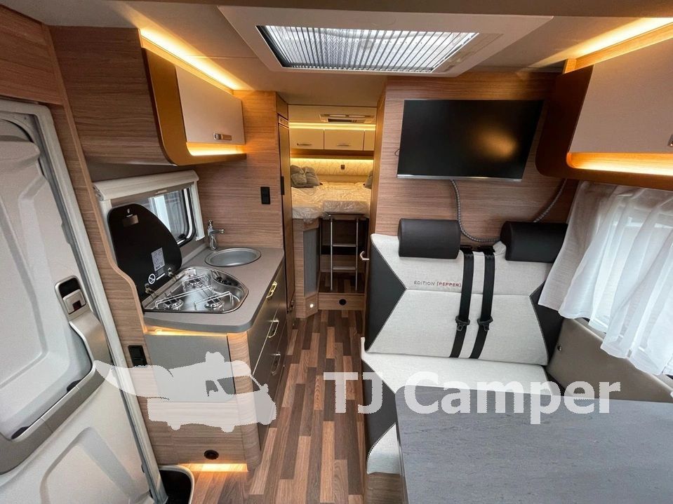 Denne model er med flg. ekstraudstyr: 170 HK, automatgear, Hot Pepper pakke , Seitz rammevinduer, Premium dør med vindue og el. trappetrin.