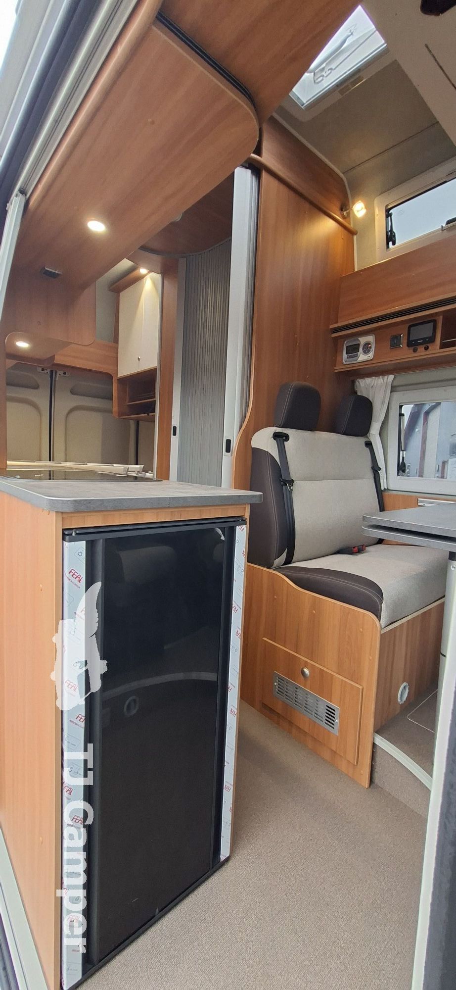 Camperen er udstyret med stor tagluge med integrerede spots, opvarmet spildevandstank samt Truma-varme med CP Plus-panel, som sikrer høj komfort året rundt. Den lyse og venlige indretning udnytter pladsen optimalt og byder på rigelig opbevaringsplads i skabe og skuffer. Badeværelset har svingbad og lameldør, og køkkenet er udstyret med et stort køleskab med svaleskuffe.